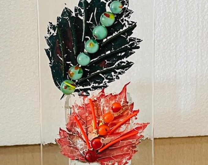 Fused Glass Winter Tree with Cardinal: Holiday Decor, Windowsill Art